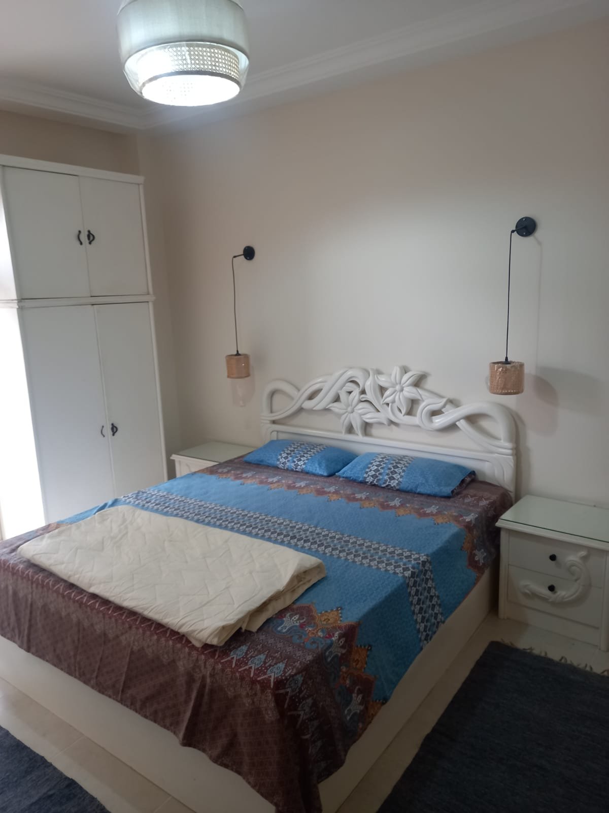 التقسيم الداخلي: 2 غرفة نوم + صالة واسعة + مطبخ مجهز + حمام.
