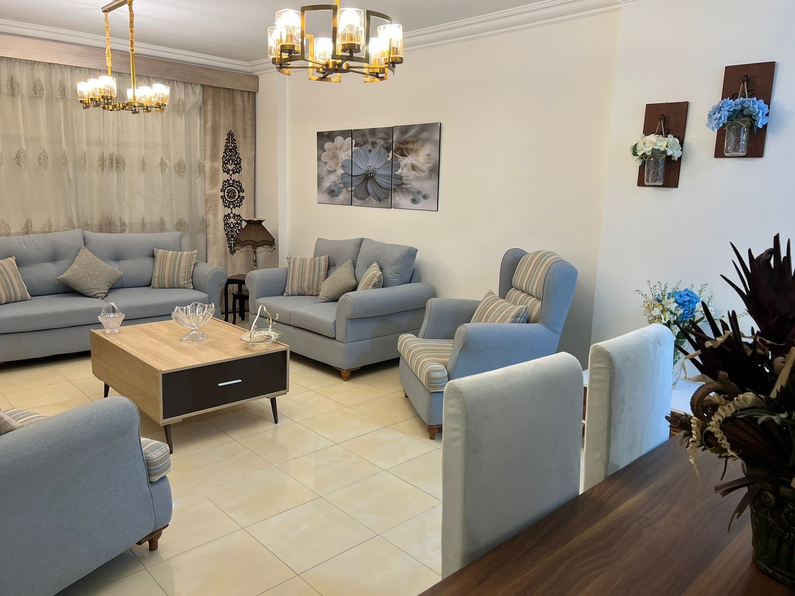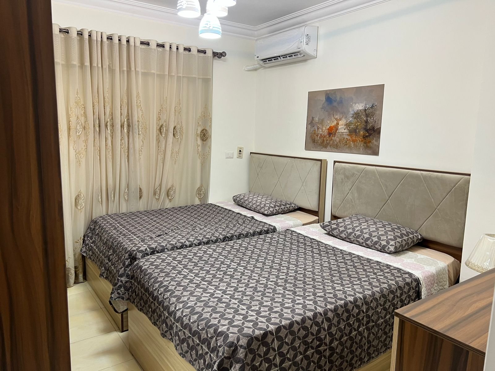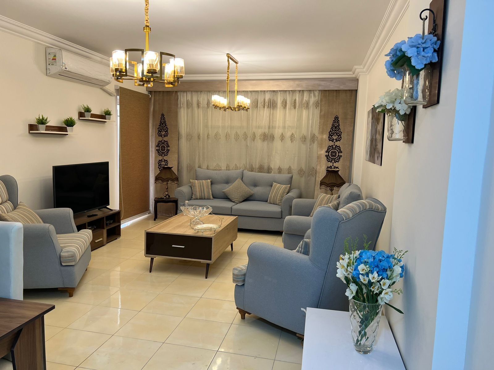 شقة مفروشة للايجار في مدينتي شقة مفروشة ارضي بدون حديقة 3 غرف نوم و2 حمام ومطبخ 1500 الايجار اليومي 35000 الايجار الشهري