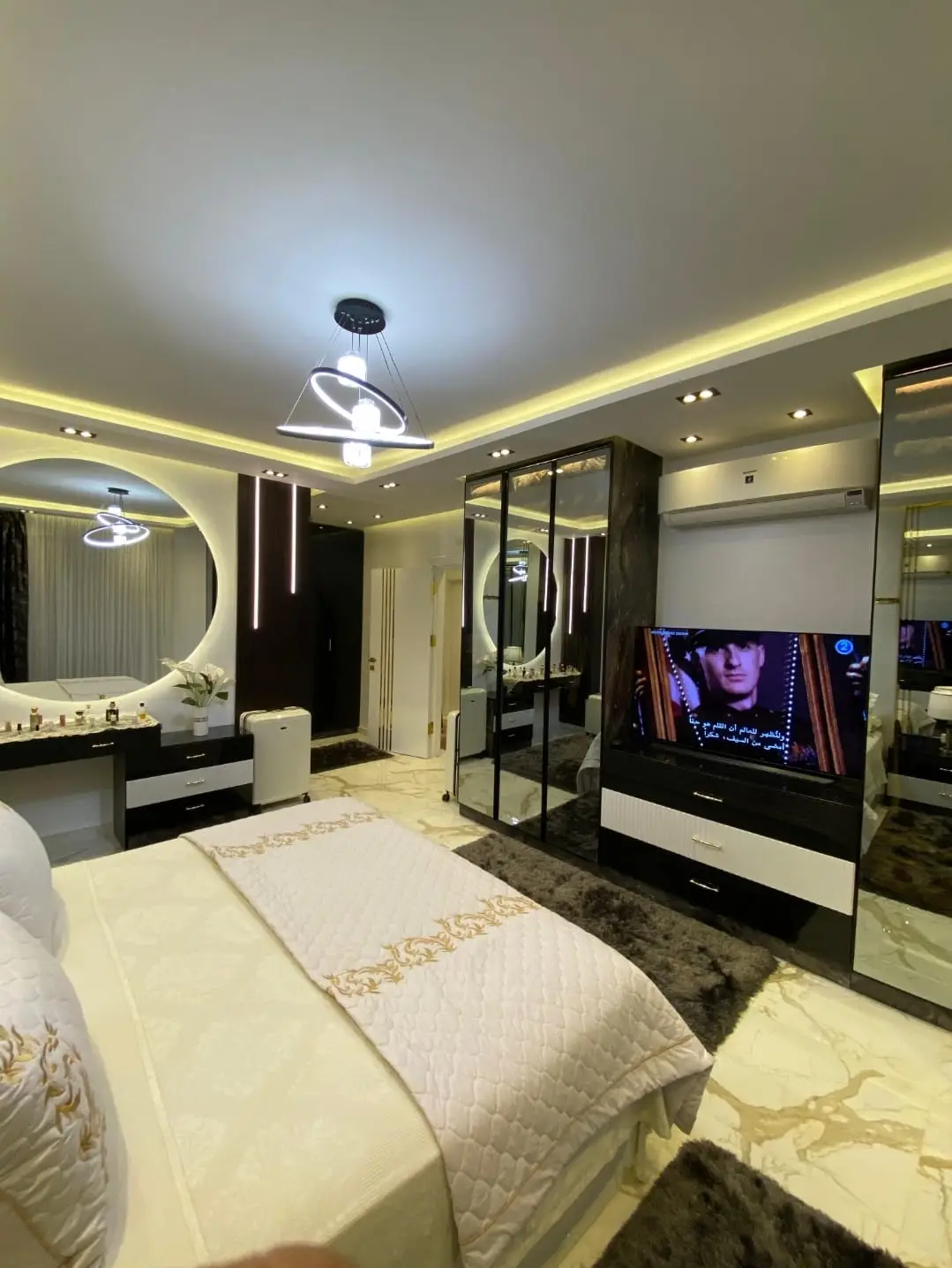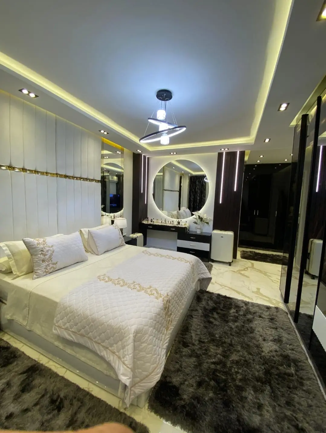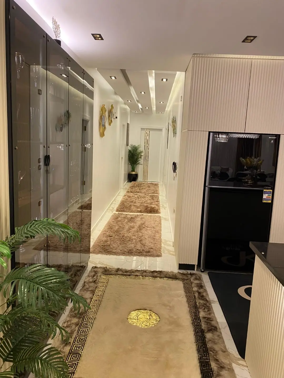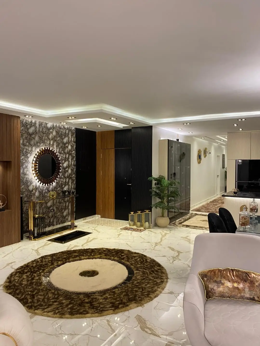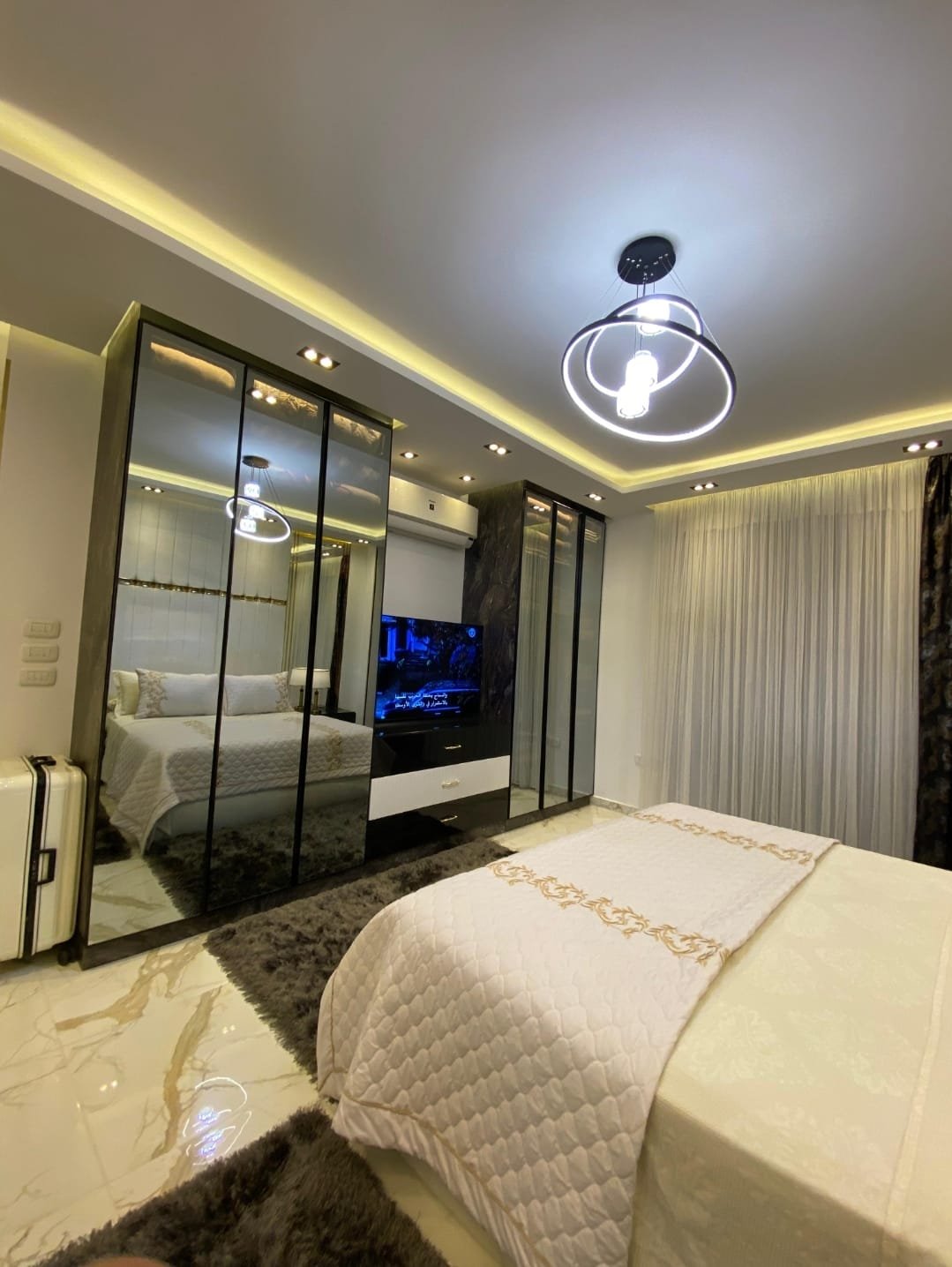 شقة مفروشة للايجار في الشيخ زايد 245 م 3 غرف و 2حمام وريسبشن كبير دور ثالث يوجد اسانسير هاي سوبر لوكس بالغفش وبالاجهزة ممنوع الزيارات للاسر فقط الايجار اليومي 6000