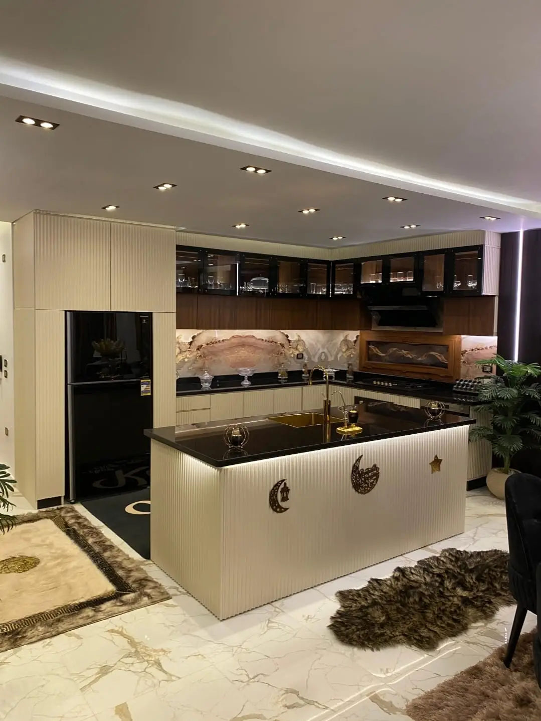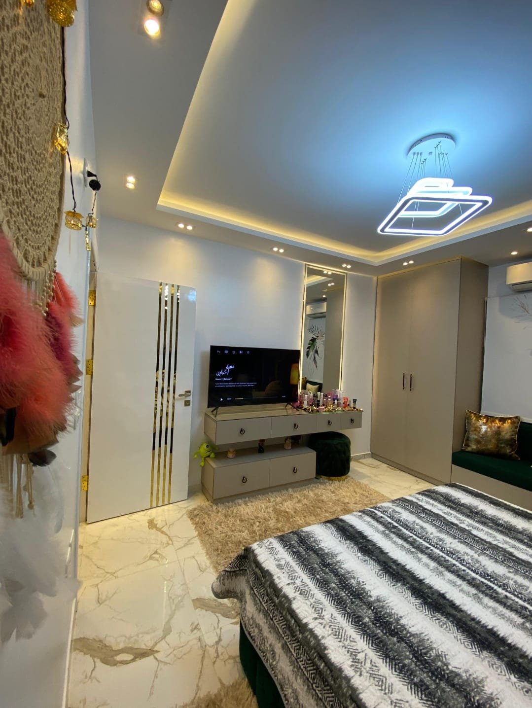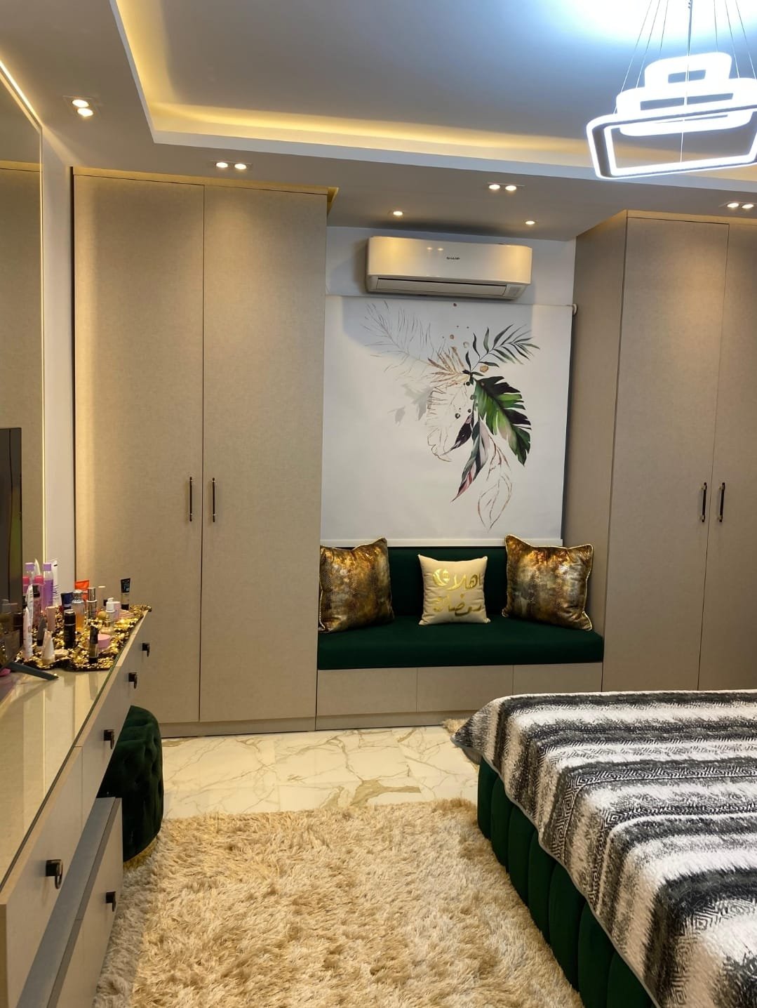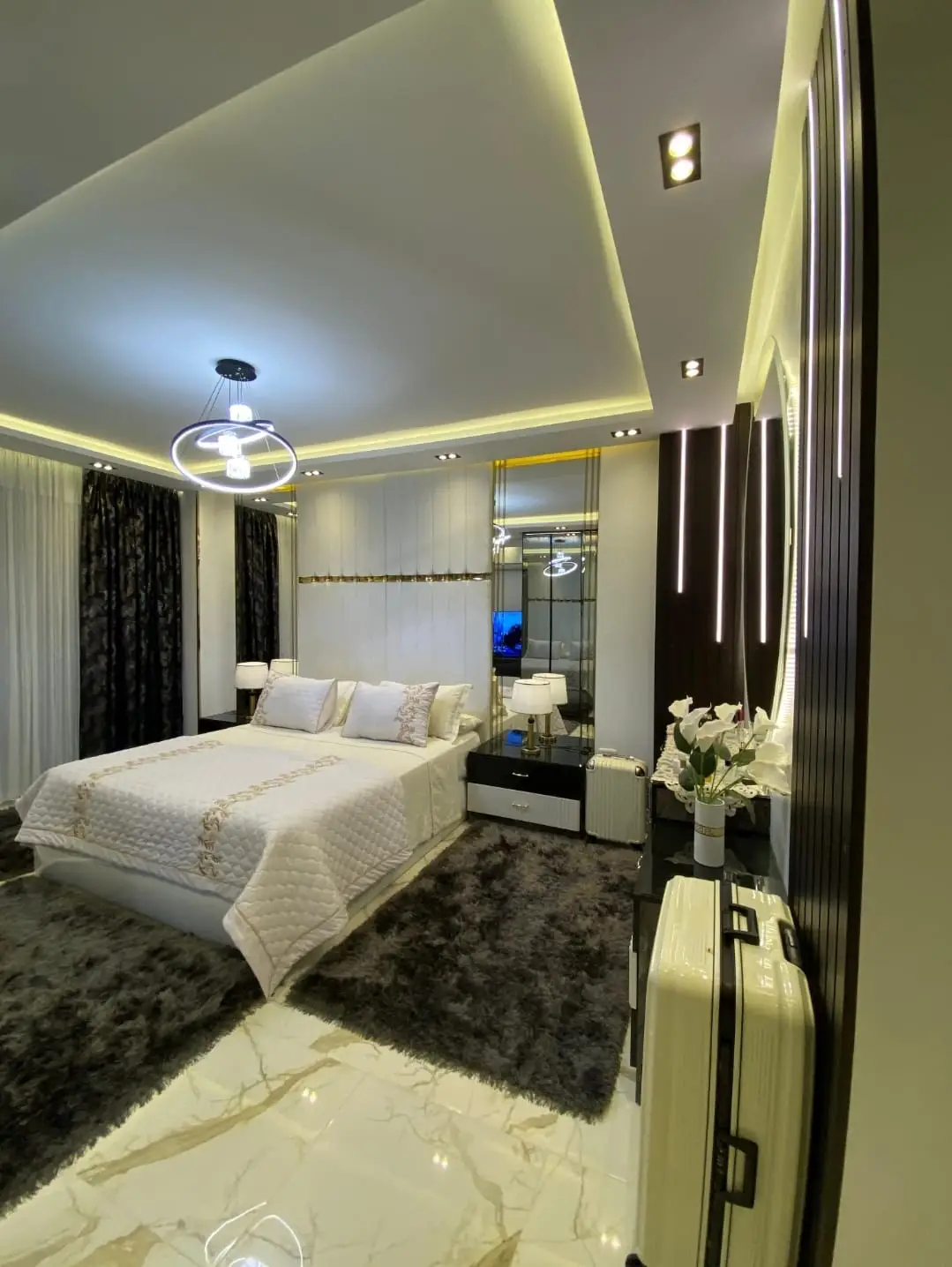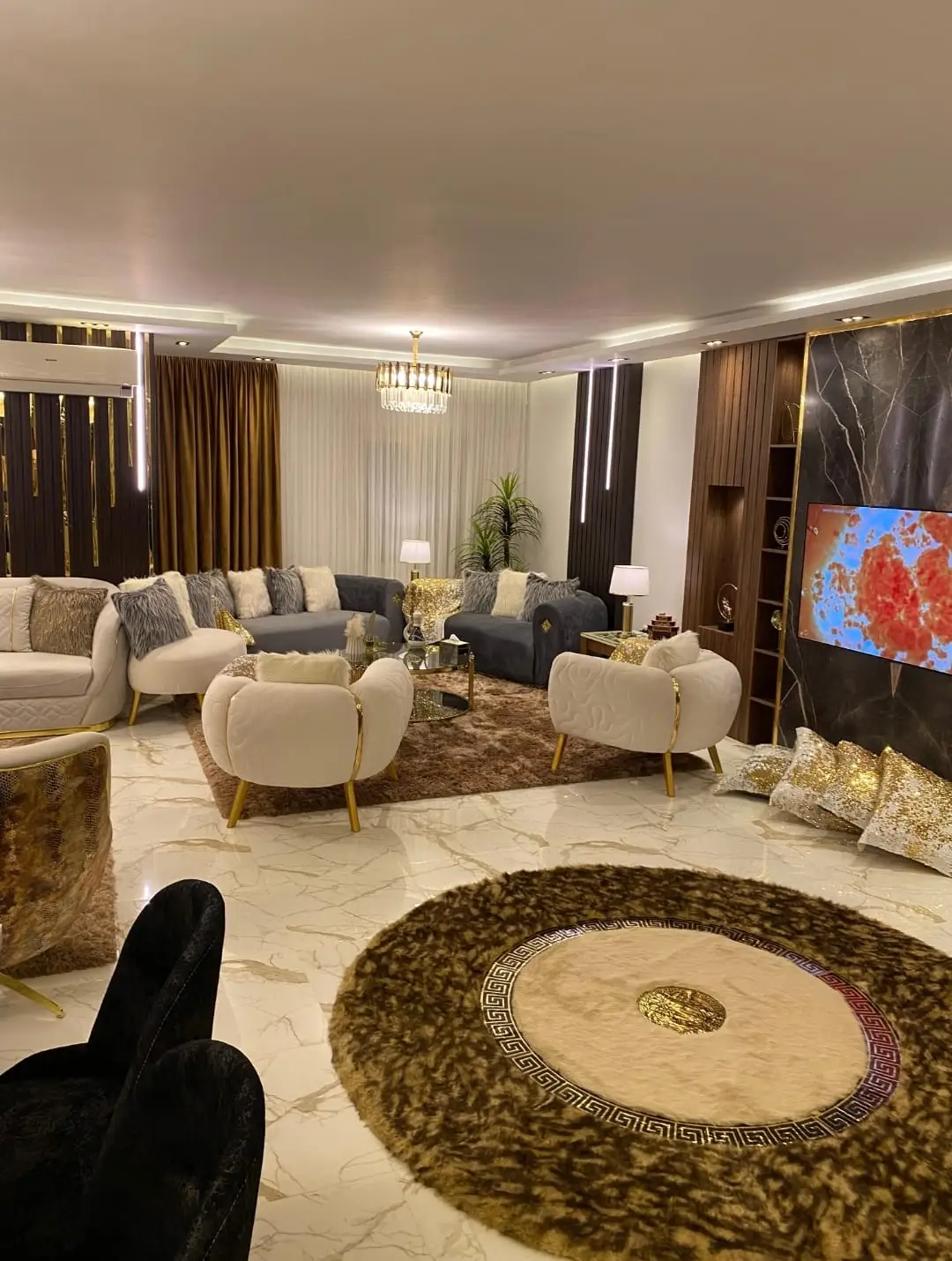 شقة مفروشة للايجار في الشيخ زايد 245 م 3 غرف و 2حمام وريسبشن كبير دور ثالث يوجد اسانسير هاي سوبر لوكس بالغفش وبالاجهزة ممنوع الزيارات للاسر فقط الايجار اليومي 6000