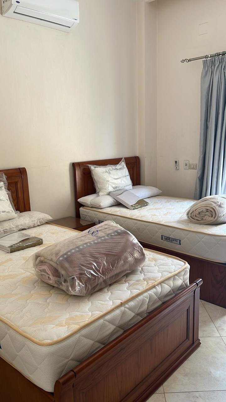 التجهيزات الكهربائية: الشقة مكيفة بالكامل (جميع الغرف والريسبشن) لمواجهة حرارة الصيف.
